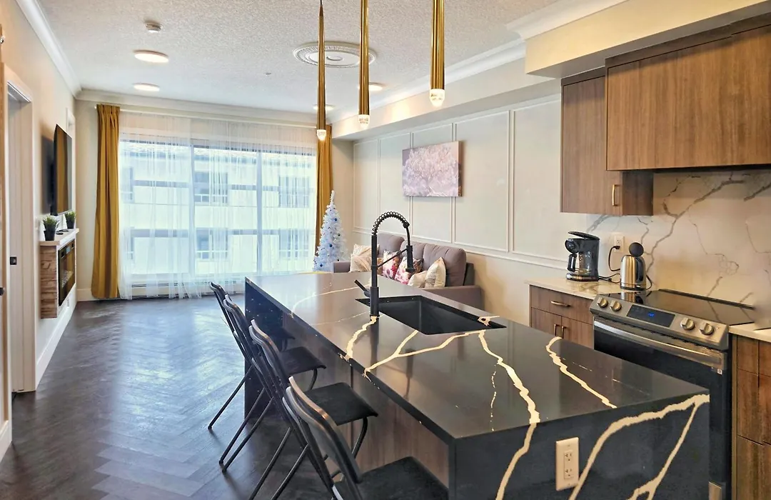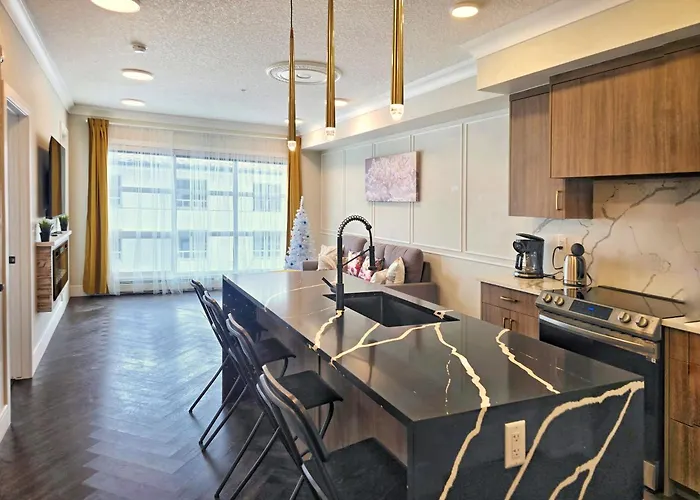 Family Stylish 1Br And Den Condo -Apartment With City View, Downtown, Balcony, Free Parking, In-Suite Laundry! YYC med 1 sovrum, som ligger ungefär 5 minuter till fots från Currie Barracks, erbjuder enkel tillgång till olika turistattraktioner i närheten.
